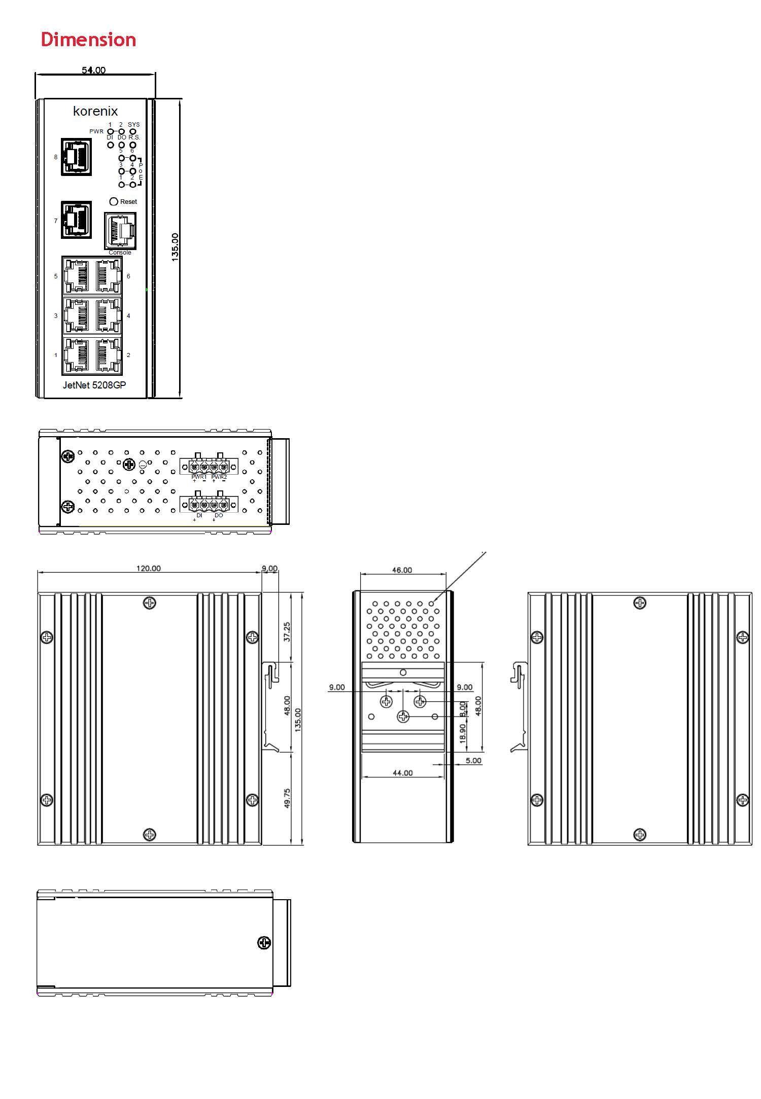 | Package | Includes: • JetNet 5208GP Series • DIN-Rail kit • Quick Installation Guide Note: Please download User Manual from Korenix website |