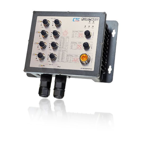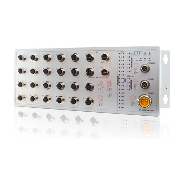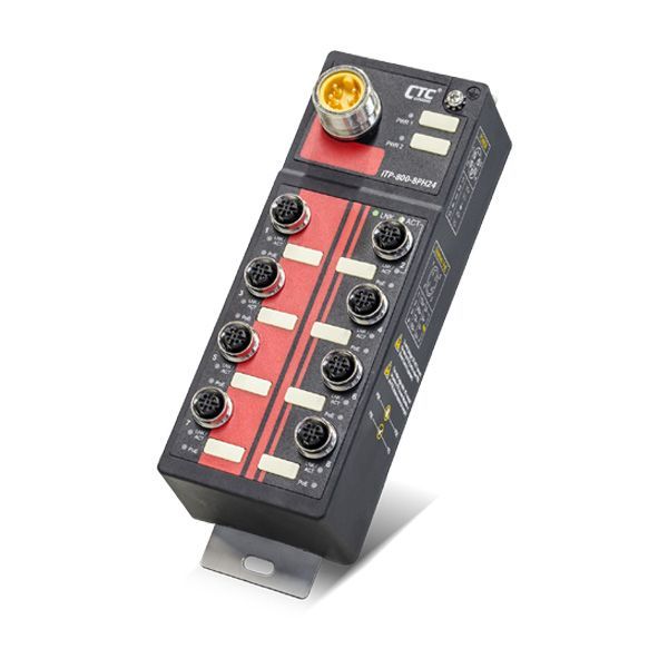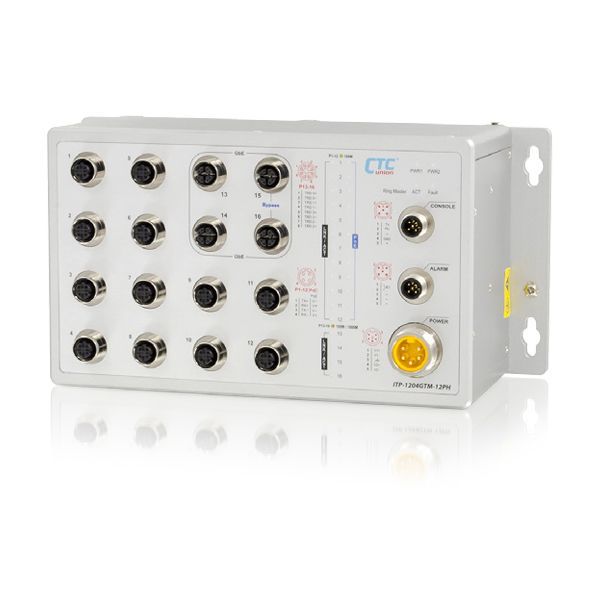- ITP-G802SM-8PH24 : 8x GbE M12 + 2x 100/1000Base SFP with 8x PoE 180W, 24/48VDC