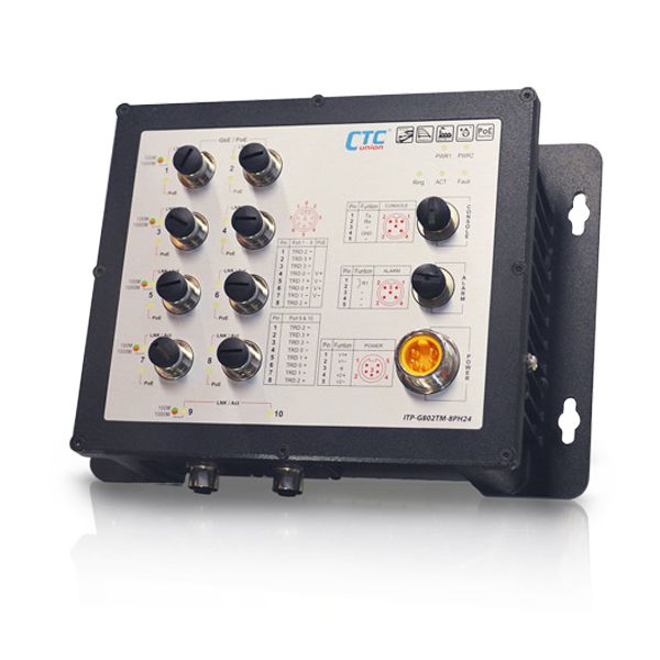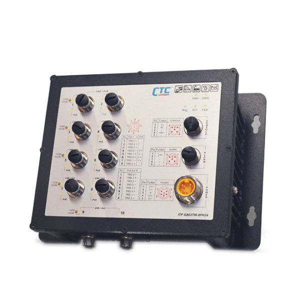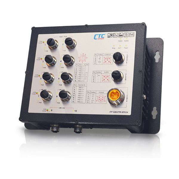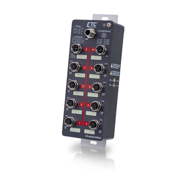 - ITP-G802TM-8PH24 : 10x GbE M12 with 8x PoE 180W, 24/48VDC