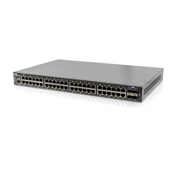 - 高密度埠數配置:提供 48 埠 Gigabit UTP 銅纜埠,支援大量有線終端設備。搭配 4 埠 10G SFP+ 插槽,滿足高速骨幹與上行連線需求。