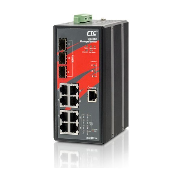 - 多樣化高速埠配置:搭載 8 個 100/1000Mbps SFP 插槽,適用光纖連接;提供 24 個 Gigabit UTP 埠,適合各類工業終端設備。