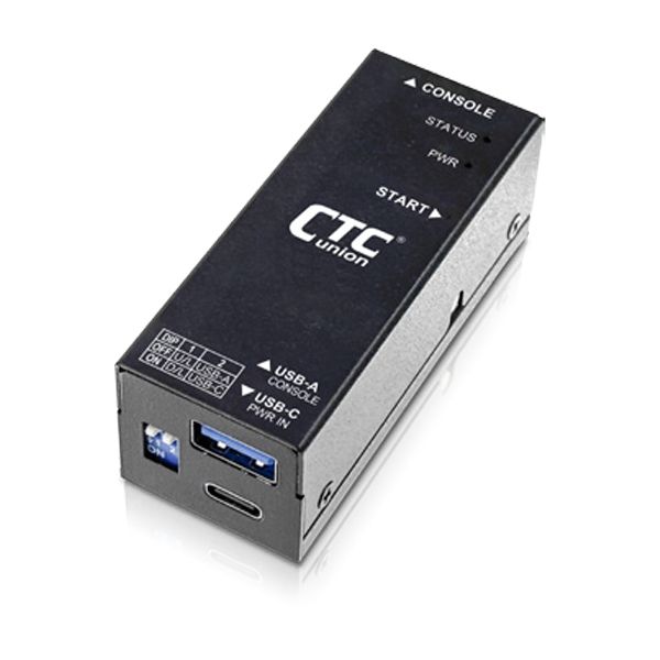 - 以USB Type C纜線進行充電,電力充飽後透過連接RS-232埠,並按下「按鈕」即可用以儲存、下載及上傳CTC網管型交換機的設定組態,