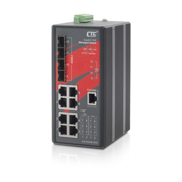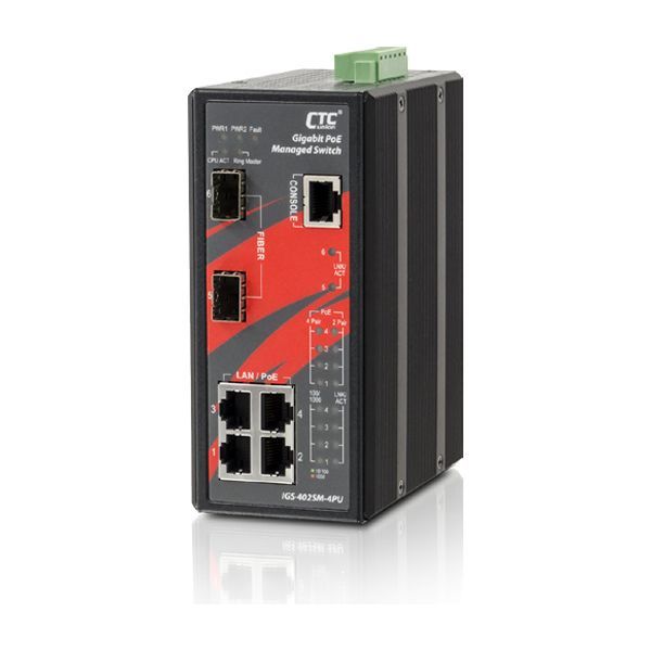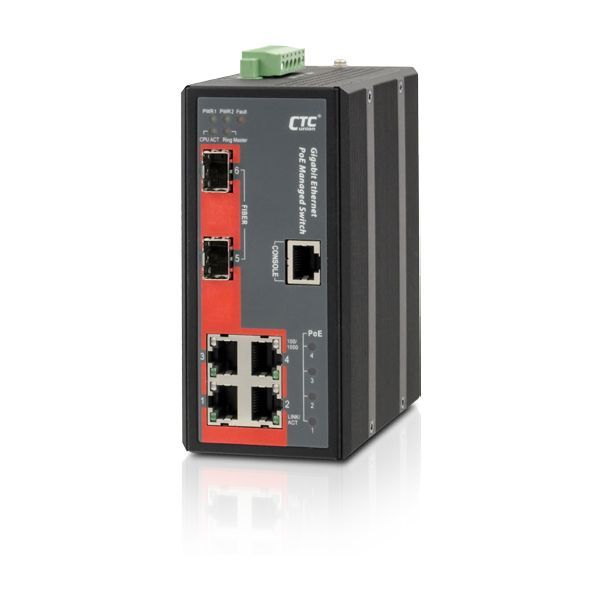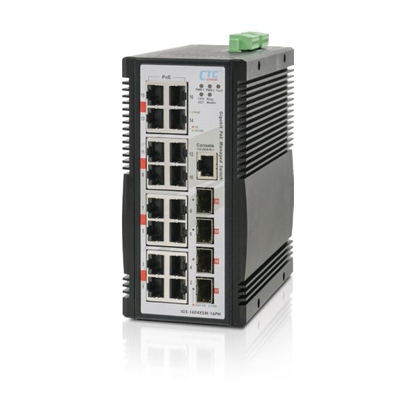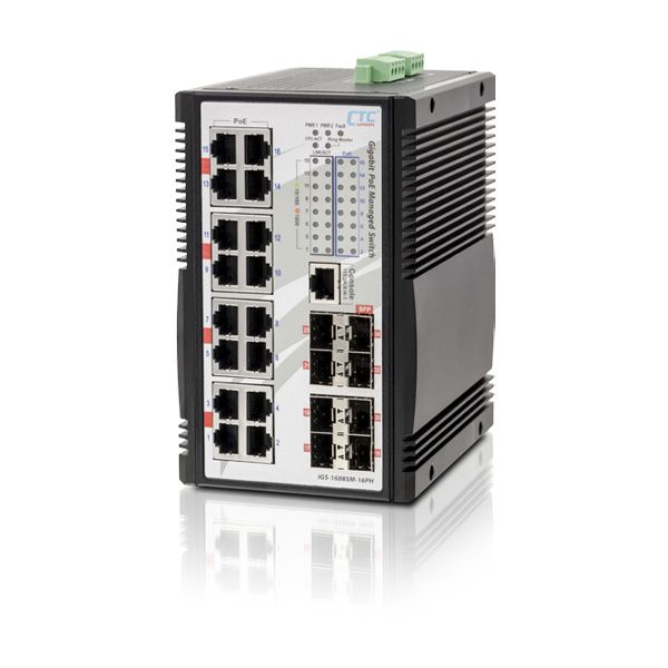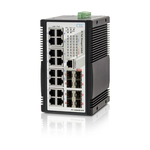 - 高效能工業級 Layer 3 PoE 交換器:鋁軌式安裝,適用於製程與運輸自動化領域支援 L3 靜態與動態路由功能。