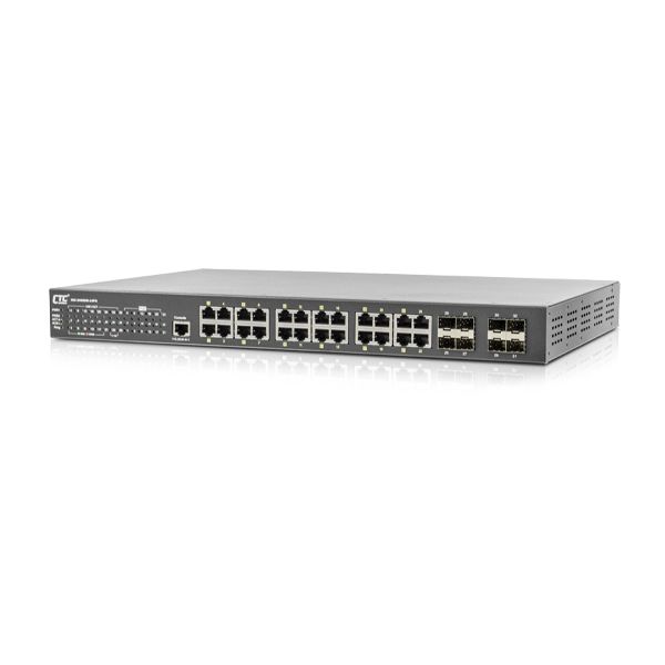 - 高速資料傳輸:搭載 4 個 10G SFP+ 上行插槽,支援高頻寬骨幹連線;提供 24 個 Gigabit UTP 埠,相容現有乙太網路設備。