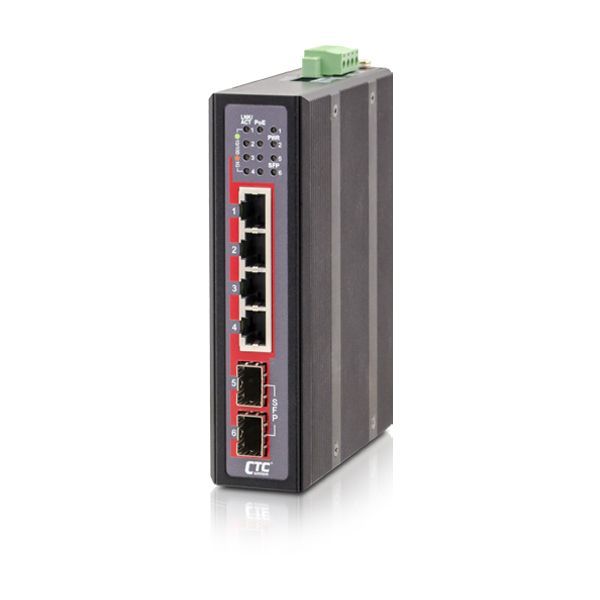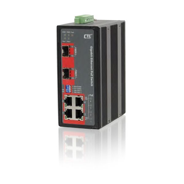 - 多埠網路配置:4個 10/100/1000Base-T RJ45 埠(支援 PoE/PoE+),2個 GbE/100M SFP 光纖插槽。