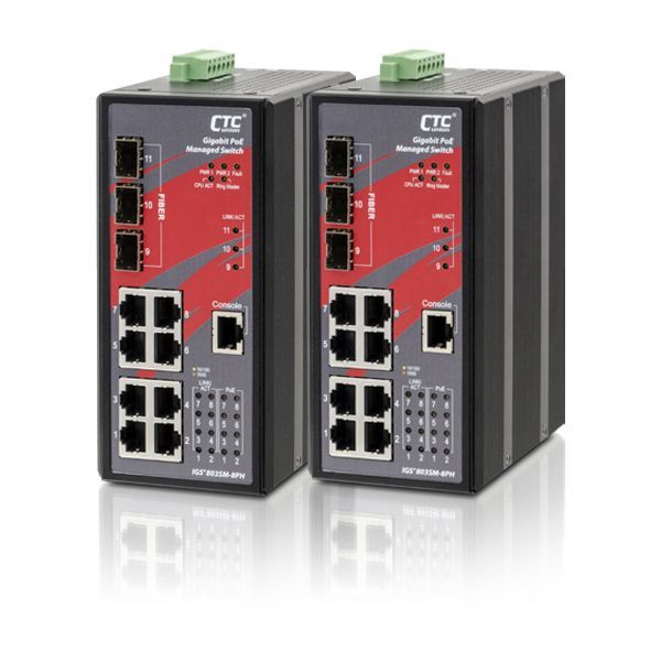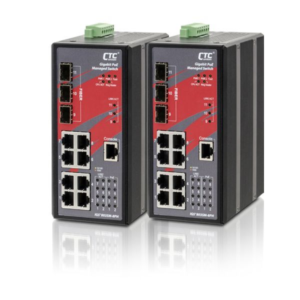 - Supports u-Ring, ERPS, EPS, MSTP, RSTP, STP for Redundant Cabling