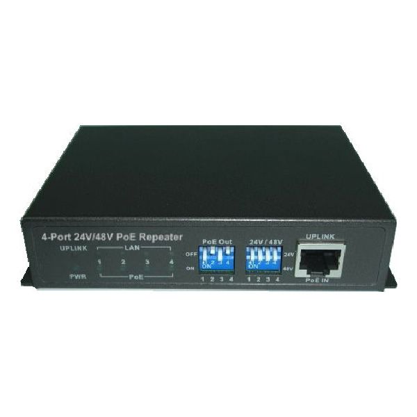 - 一進四出,將傳輸距離再增加100公尺,連接四台PD設備
