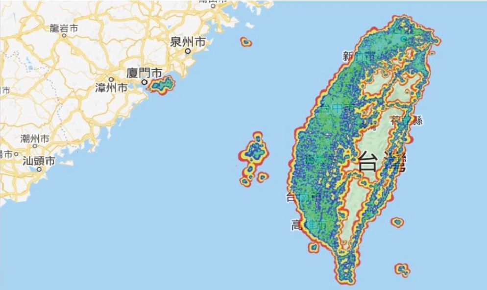 行動寬頻系統覆蓋率 (紅色範圍內)