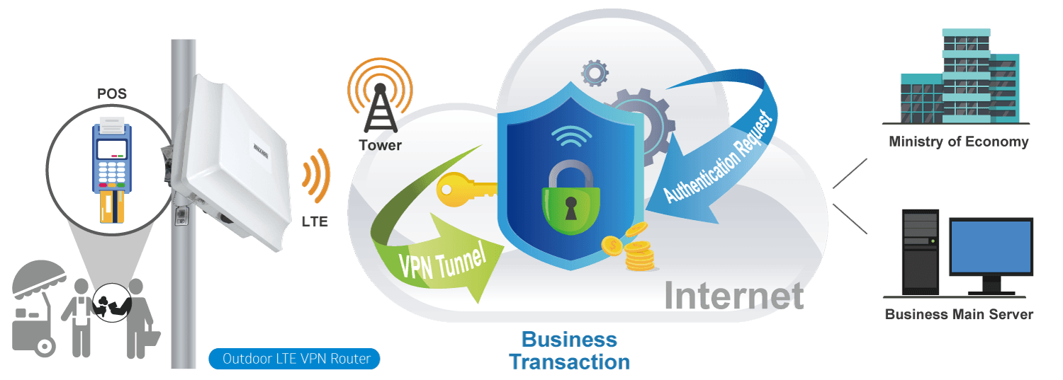 BiPAC 4700ZU可以提供出色的LTE連接,支持即時POS設置,以便在沒有固定線路Internet連接的偏遠地區訪問信用卡。由於當地法規不同,POS系統需要與政府財務部門建立Internet連接。BiPAC 4700ZU可以與主公司服務器所在的中央業務部門建立VPN連接,以無縫處理交易。