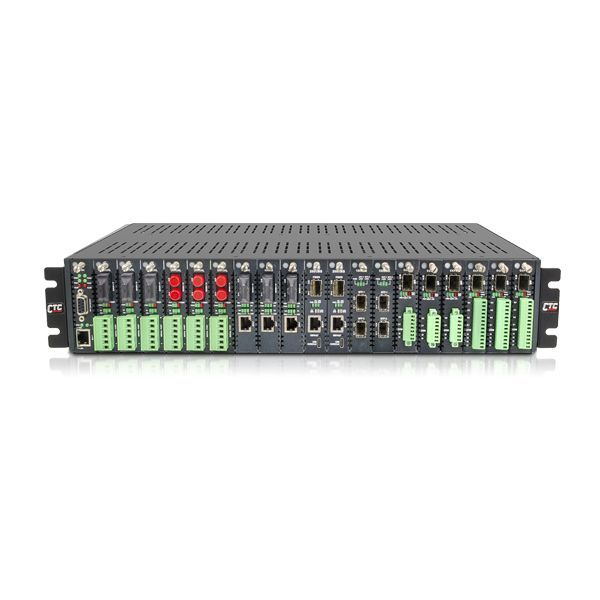 - 可收容Fast Ethernet、Gigabit Ethernet光電轉換器及VDSL2 Modem、LAN Extender,可熱插拔
