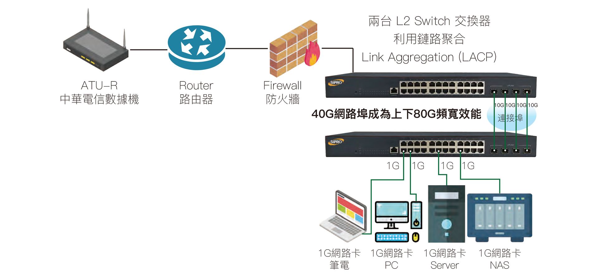 - 支援鏈路聚合,全雙工模式,上行下行鏈路頻寬高達80Gbps。